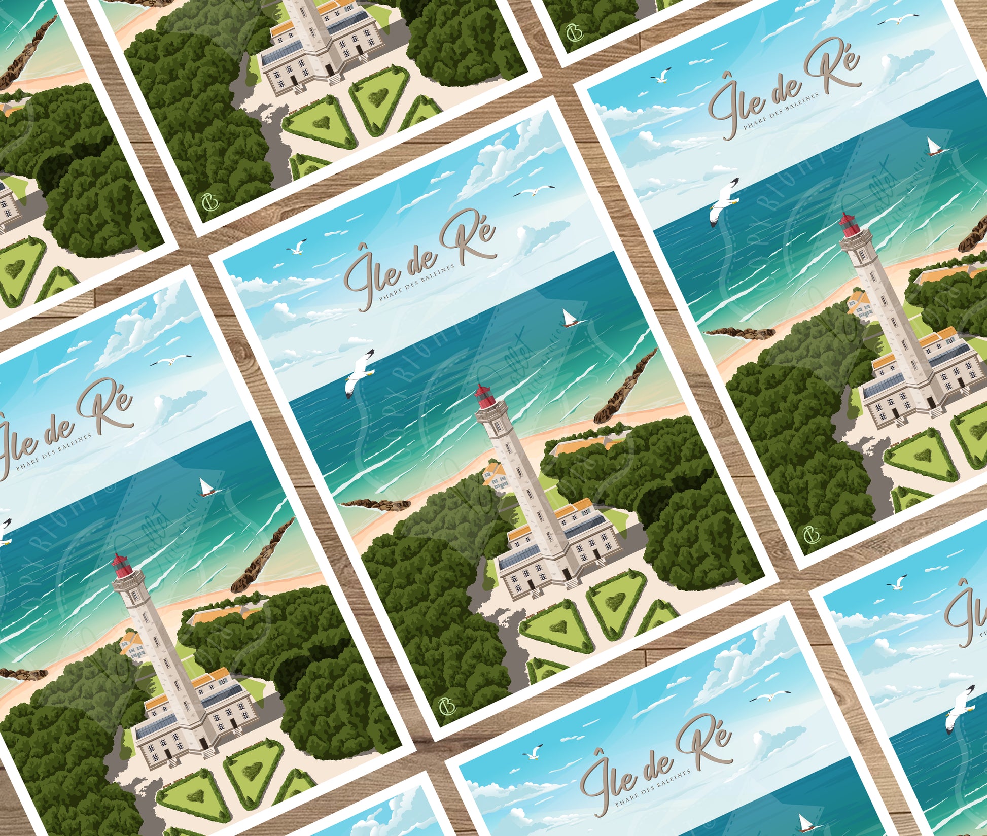 Transformez votre intérieur avec une illustration qui célèbre l’esprit et la beauté de la côte rétaise, et voyagez chaque jour depuis votre salon !