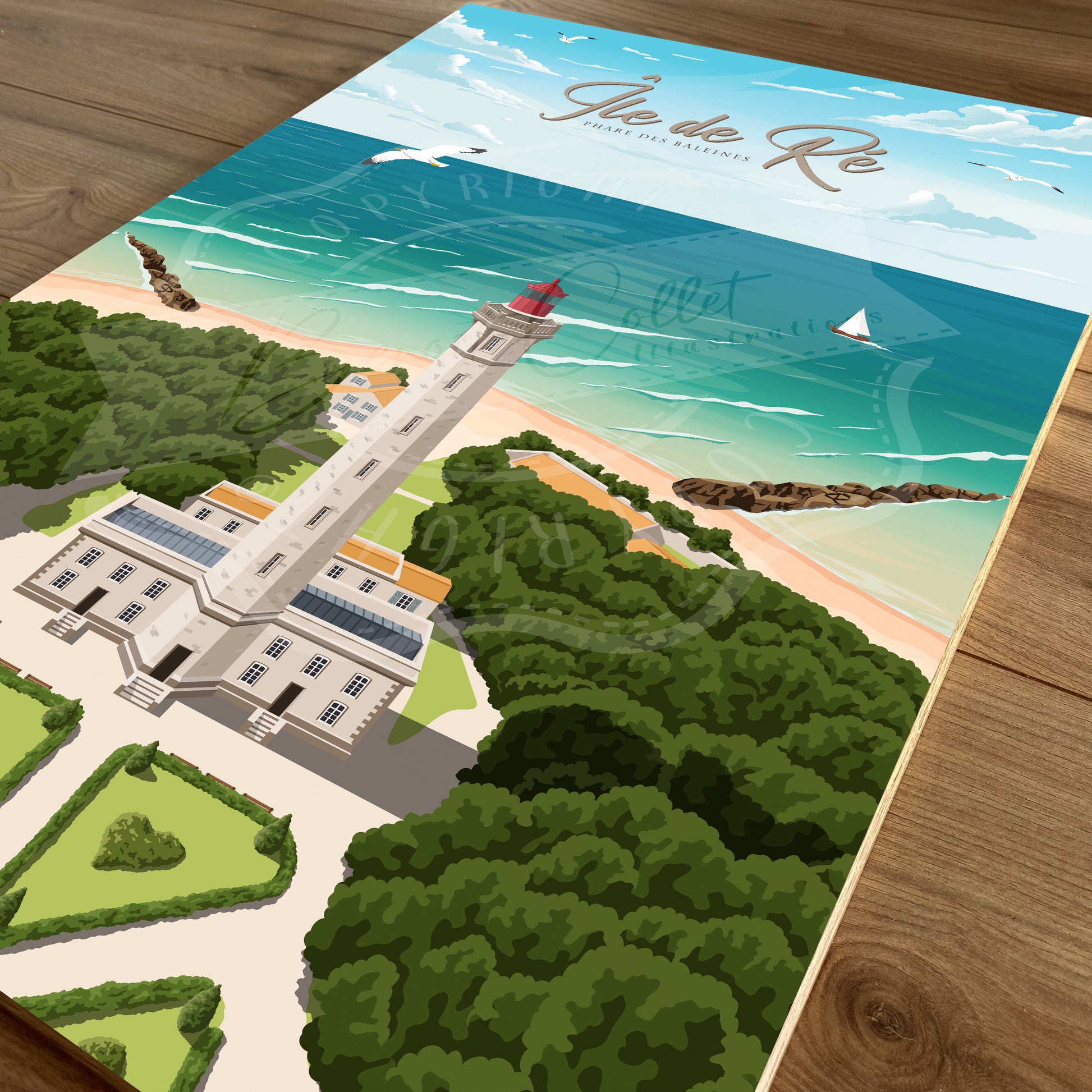 Transformez votre intérieur avec une illustration qui célèbre l’esprit et la beauté de la côte rétaise, et voyagez chaque jour depuis votre salon !